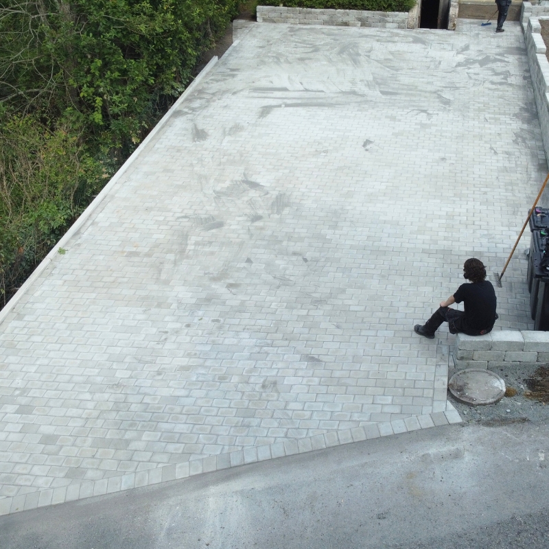 En korrekt lagd stenläggning kräver minimalt underhåll. Vi rekommenderar dock att sopa rent ytan regelbundet och fylla på fogsand vid behov.